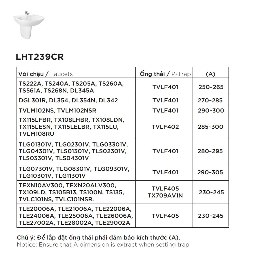 Thông số của chậu rửa mặt - lavabo treo tường TOTO LHT239CR#W: