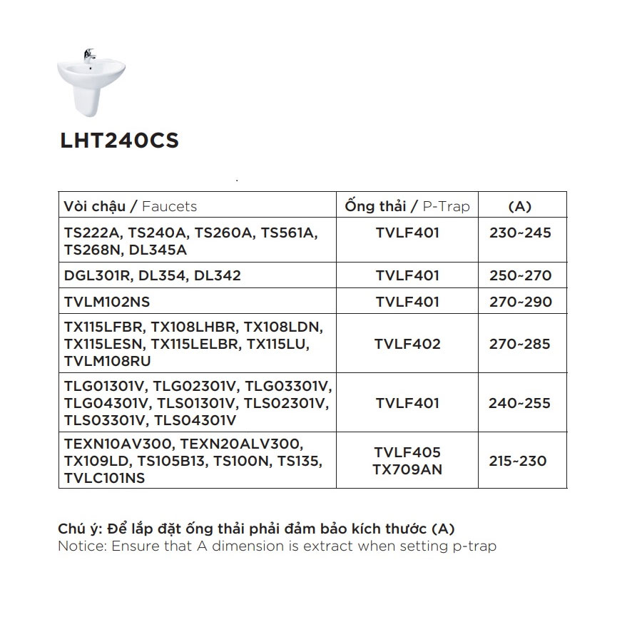 Thông tin sản phẩm chậu rửa Lavabo TOTO treo tường chân lửng LHT240CS