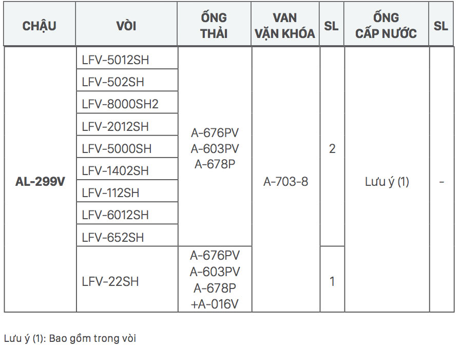 Thông số kỹ thuật chậu rửa Lavabo đặt bàn INAX AL-299V