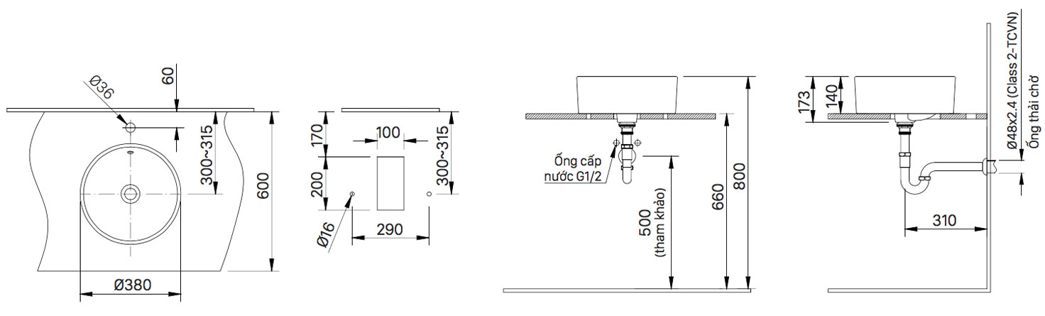 Bản vẽ kỹ thuật bồn rửa lavabo INAX đặt bàn L-295V