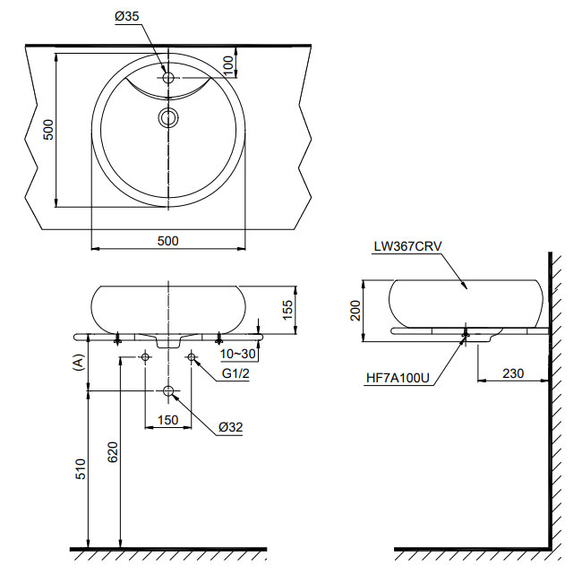 | Đường kính lỗ bắt vòi | Ø35 (mm) |