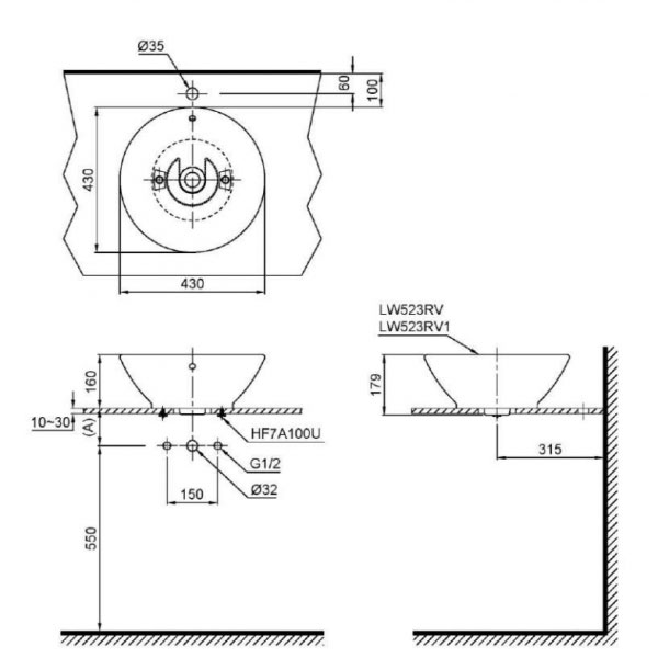 Thông tin kỹ thuật chậu rửa mặt TOTO đặt bàn LT523S