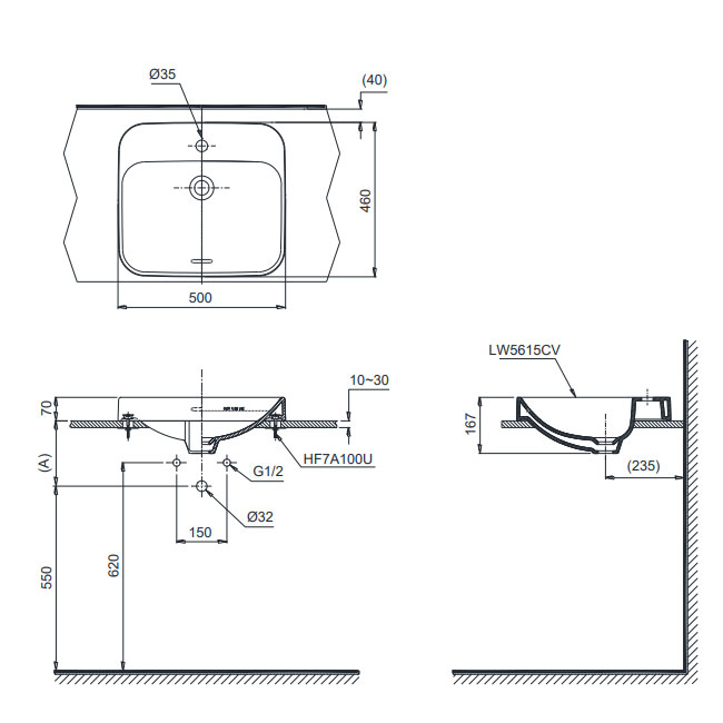 | Đường kính lỗ bắt vòi | Ø35 (mm) |