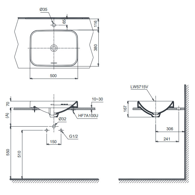 Bản vẽ kỹ thuật chậu rửa Lavabo TOTO đặt bàn LT5715