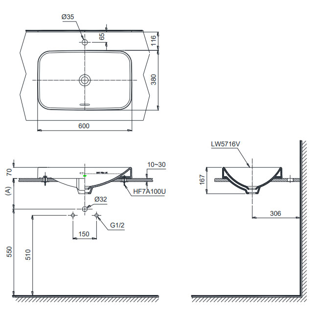 | Đường kính lỗ bắt vòi | Ø35 (mm) |