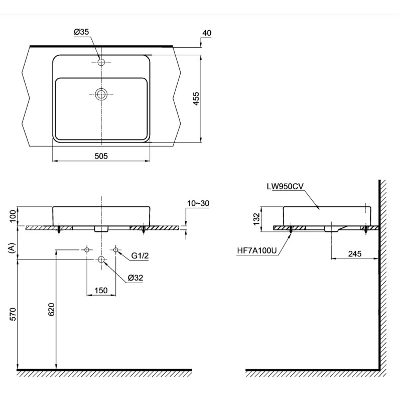 Bản vẽ kỹ thuật chậu rửa Lavabo TOTO đặt bàn LT950C