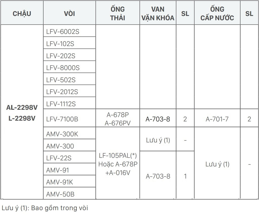 • Không bao gồm bộ giá đỡ A-L2298V-1