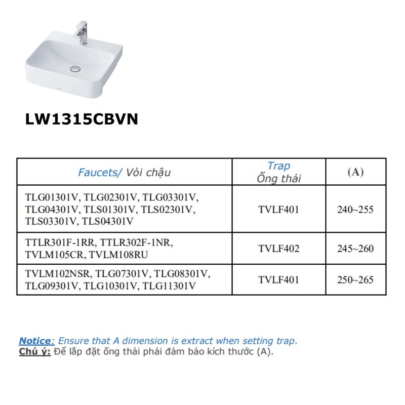 Gợi ý kết hợp vòi chậu và ống thải với chậu rửa mặt lavabo bán âm TOTO LW1315CBVN