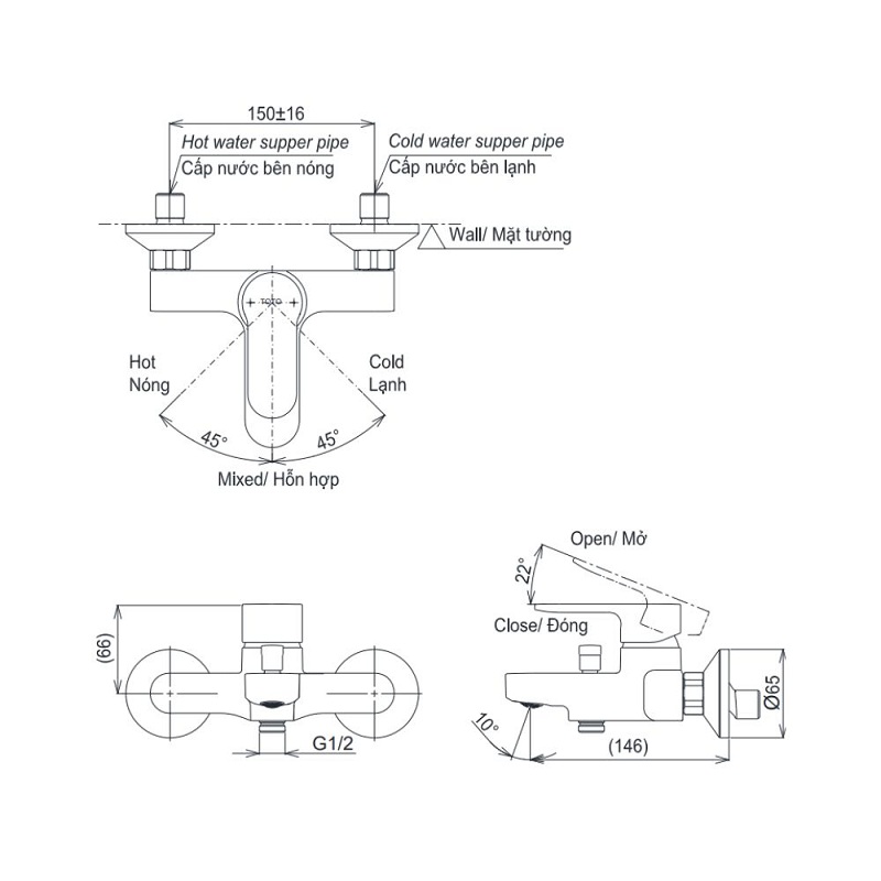 Bản vẽ kỹ thuật củ sen tắm nóng lạnh GT Series TOTO TBS06302V