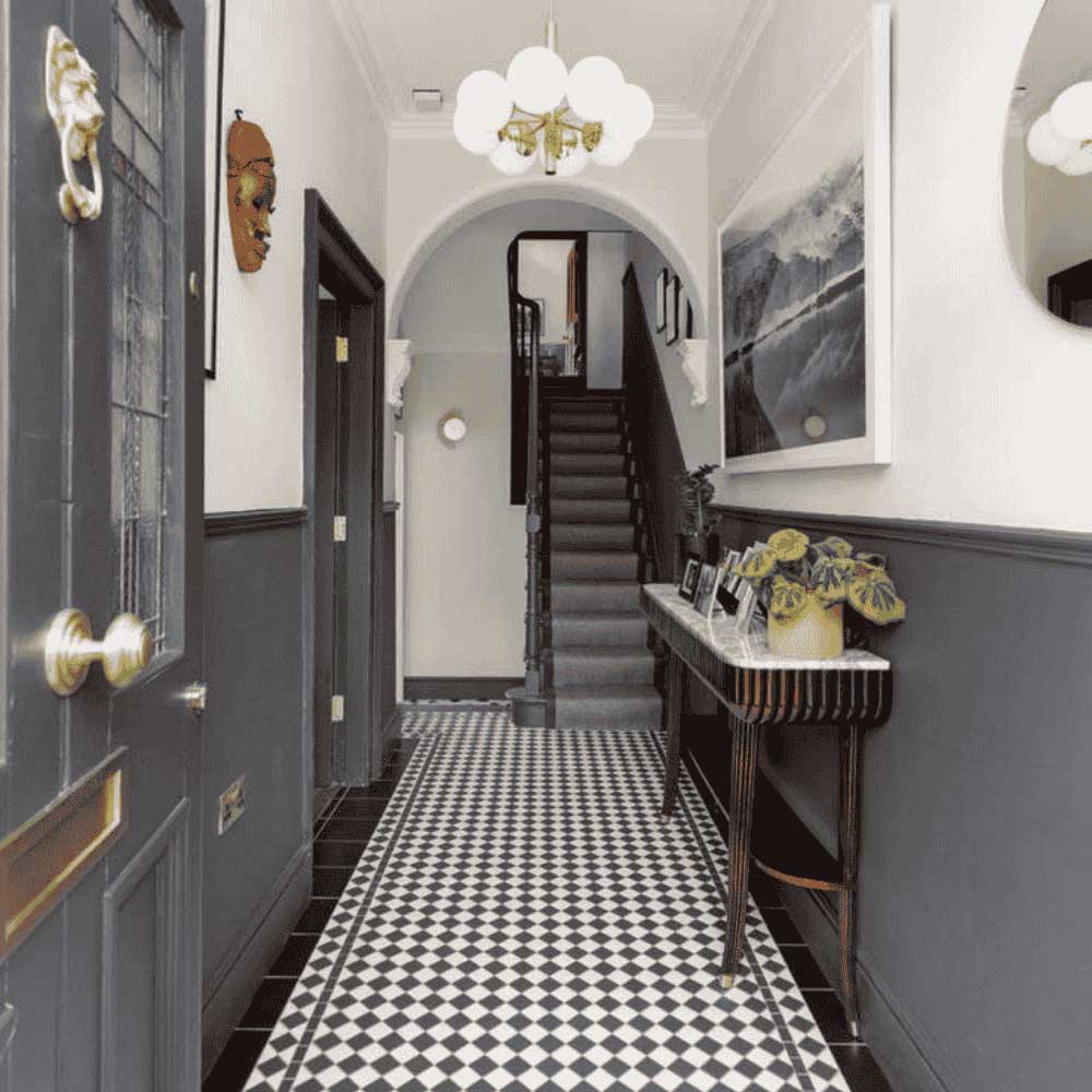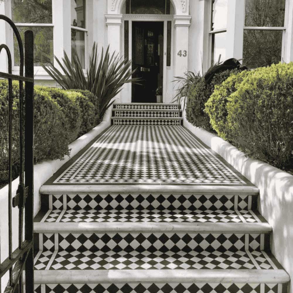 | Màu sắc | Gạch bông hình thoi trắng đen |