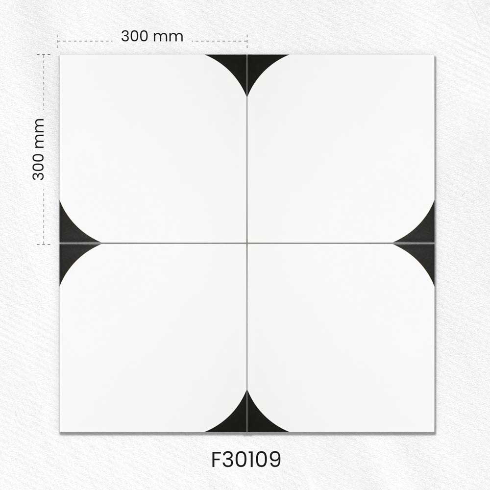 | Màu sắc | Gạch bông cánh quạt trắng điểm 2 góc đen |