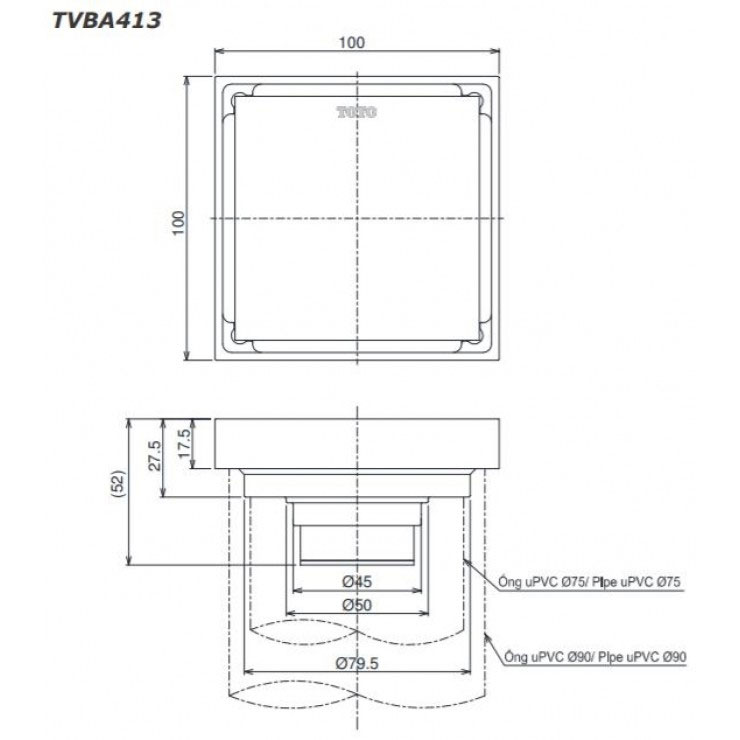 Thông tin sản phẩm phễu thoát sàn TOTO TVBA413