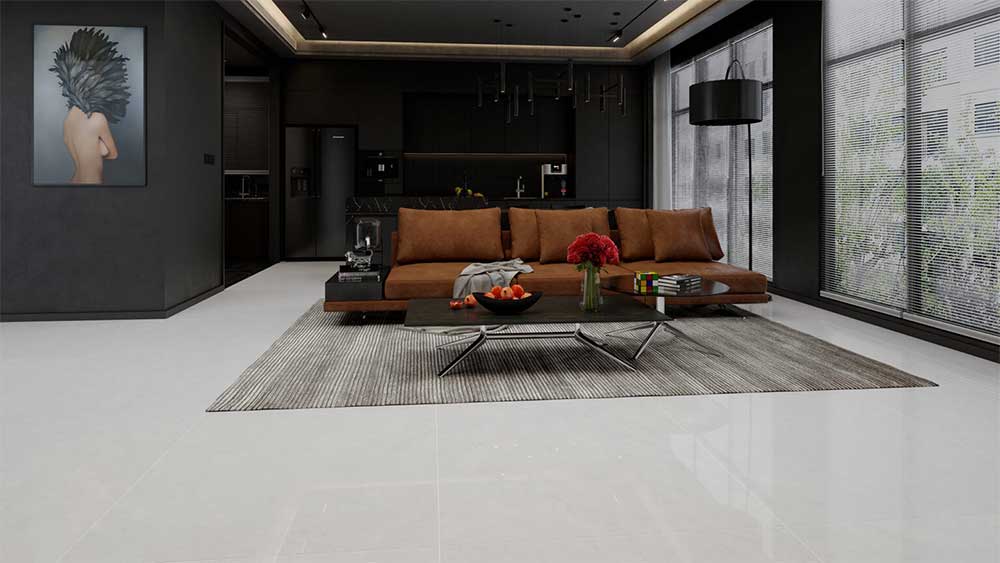 Gạch lát nền kích thước 1000×1000 mm với bề mặt bóng (Polished Porcelain) mang đến vẻ đẹp sang trọng và hiện đại bậc nhất. Bề mặt được mài bóng sáng mịn, phản chiếu ánh sáng tự nhiên, giúp mở rộng không gian, tôn lên sự tinh tế và đẳng cấp cho từng chi tiết thiết kế.