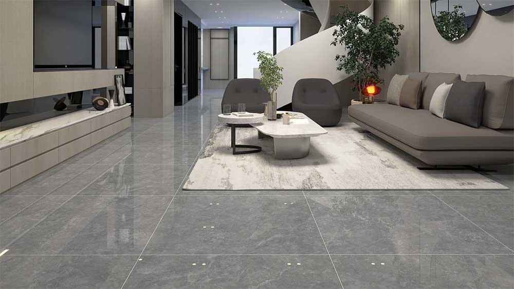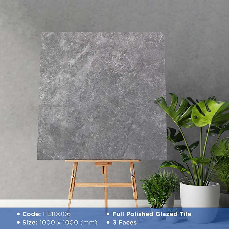 Gạch lát nền kích thước 1000×1000 mm với bề mặt bóng (Polished Porcelain) mang đến vẻ đẹp sang trọng và hiện đại bậc nhất. Bề mặt được mài bóng sáng mịn, phản chiếu ánh sáng tự nhiên, giúp mở rộng không gian, tôn lên sự tinh tế và đẳng cấp cho từng chi tiết thiết kế.