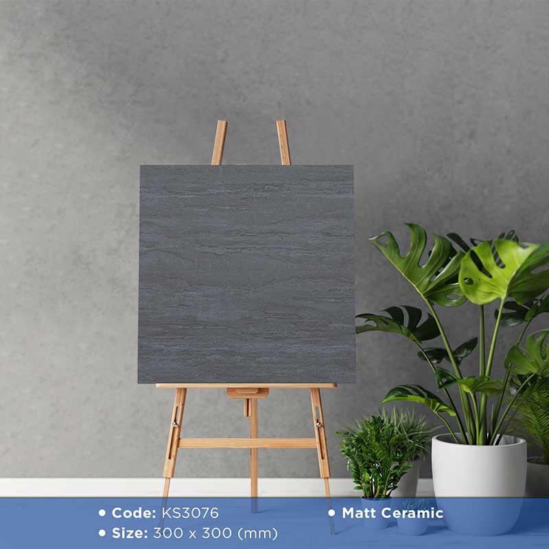 Gạch lát nền kích thước 300×300 mm với bề mặt mờ (Matt Ceramic) là lựa chọn phổ biến cho nhiều công trình nhờ tính tiện dụng và dễ ứng dụng. Bề mặt mờ giúp hạn chế trơn trượt, mang đến sự an toàn và thoải mái trong quá trình sử dụng hằng ngày.