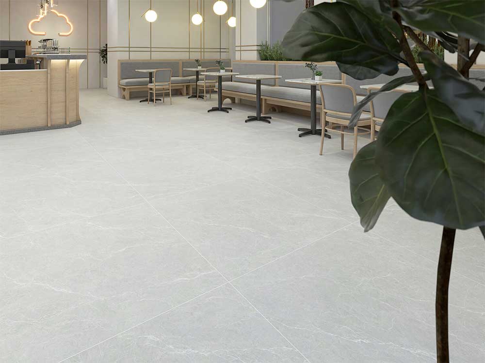 Gạch lát nền kích thước 1000×1000 mm với bề mặt mờ (Matt Porcelain) mang đến vẻ đẹp tự nhiên, sang trọng nhưng không kém phần tinh tế. Bề mặt mờ giúp hạn chế trơn trượt, tạo cảm giác ấm áp và an toàn khi sử dụng, đồng thời giữ được nét hiện đại và tối giản trong thiết kế nội thất.