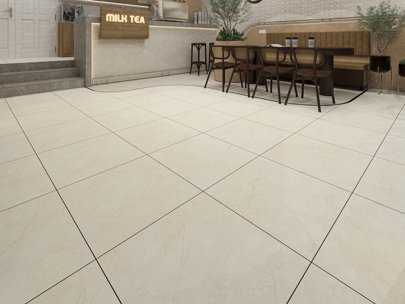 Gạch lát nền kích thước 600×600 mm với bề mặt mờ mang đến vẻ đẹp tự nhiên, tinh tế và gần gũi. Không chỉ tôn lên sự sang trọng một cách nhẹ nhàng, bề mặt mờ còn giúp hạn chế trơn trượt, tạo cảm giác an toàn và thoải mái khi sử dụng hằng ngày.