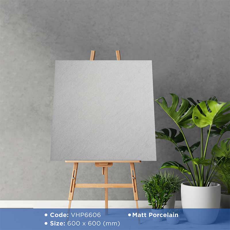 Được sản xuất trên nền xương gạch porcelain cao cấp, sản phẩm sở hữu độ bền vượt trội, khả năng chống thấm, chống mài mòn tốt và dễ dàng vệ sinh. Với kích thước vuông chuẩn, gạch 600×600 bề mặt mờ phù hợp ứng dụng trong nhiều không gian như phòng khách, phòng ngủ, bếp ăn, phòng tắm, cũng như khu vực thương mại yêu cầu sự bền bỉ và tính thẩm mỹ cao.