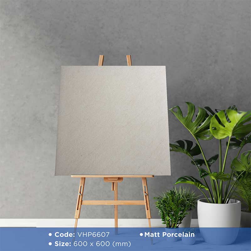 Được sản xuất trên nền xương gạch porcelain cao cấp, sản phẩm sở hữu độ bền vượt trội, khả năng chống thấm, chống mài mòn tốt và dễ dàng vệ sinh. Với kích thước vuông chuẩn, gạch 600×600 bề mặt mờ phù hợp ứng dụng trong nhiều không gian như phòng khách, phòng ngủ, bếp ăn, phòng tắm, cũng như khu vực thương mại yêu cầu sự bền bỉ và tính thẩm mỹ cao.
