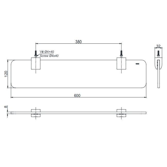Bản vẽ kệ kính YAK201GV TOTO 600mm