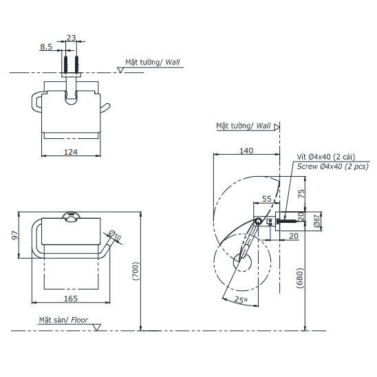Bản vẽ kỹ thuật lô giấy vệ sinh Toto YH406RV