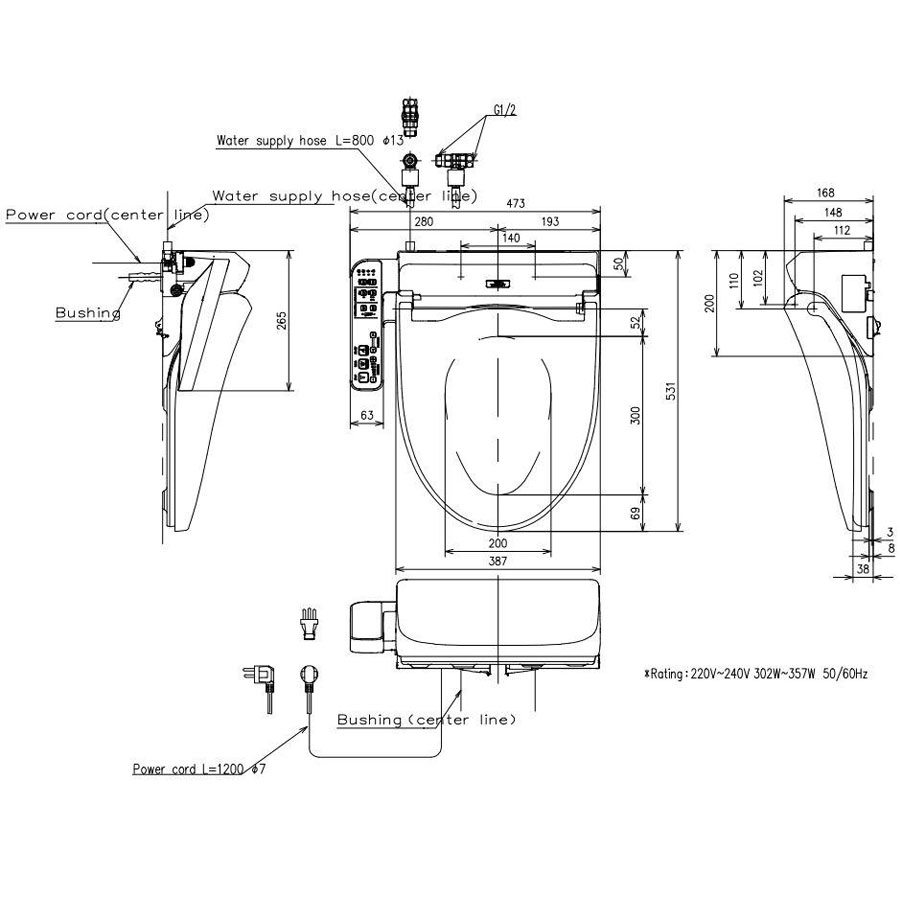 Bản vẽ kỹ thuật nắp Washlet TOTO C2 TCF23710AAA