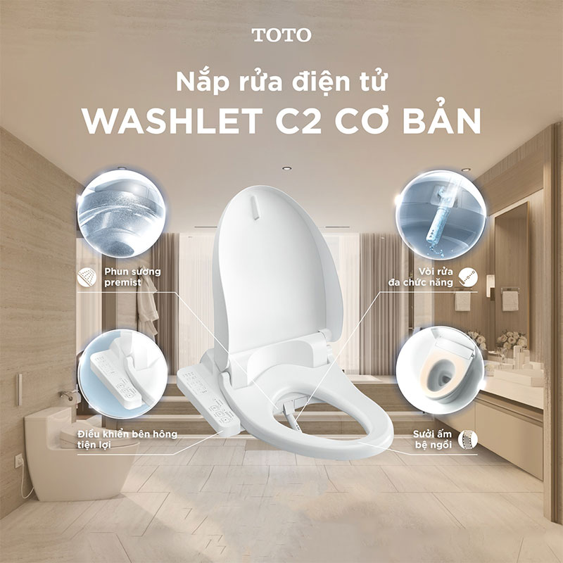 Nắp bồn cầu thông minh TOTO TCF23710AAA (W18) Washlet C2 cơ bản
