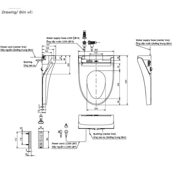 • Điều chỉnh nhiệt độ sấy, nước và bệ ngồi