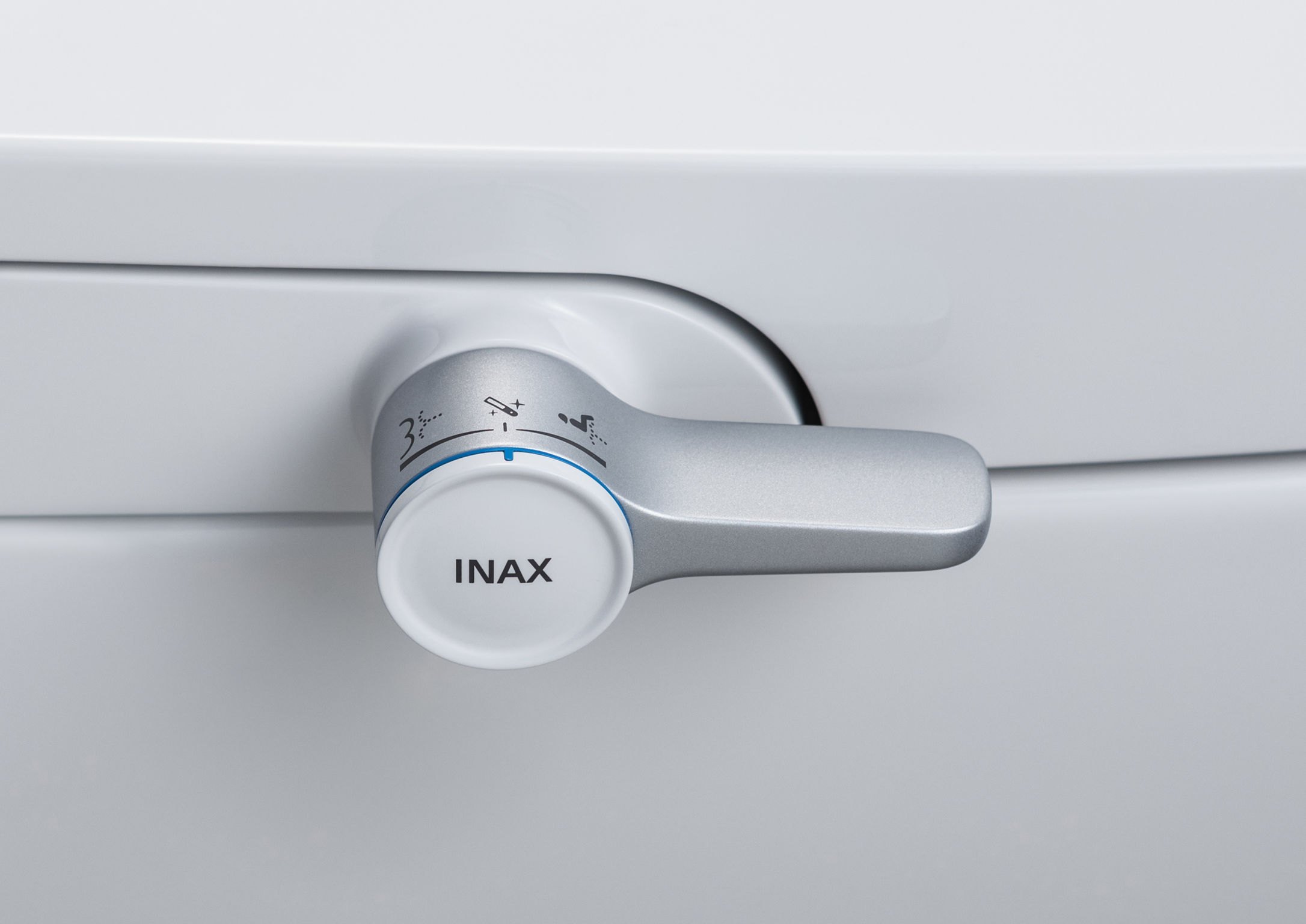 - Là mẫu nắp bồn cầu tự rửa cơ thông minh của INAX, không sử dụng điện năng như nắp điện tử, chỉ sử dụng nước lạnh và thao tác điều khiển bằng tay gạt.