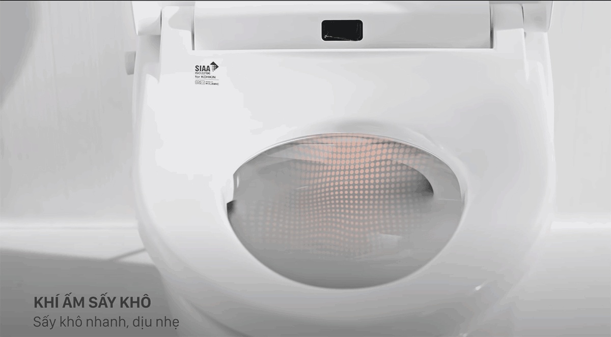 - Khí ấm sấy khô: khí ấm sấy khô nhanh, dịu nhẹ, mang lại sự sạch sẽ, an toàn và tiện ích khi không cần dùng giấy vệ sinh