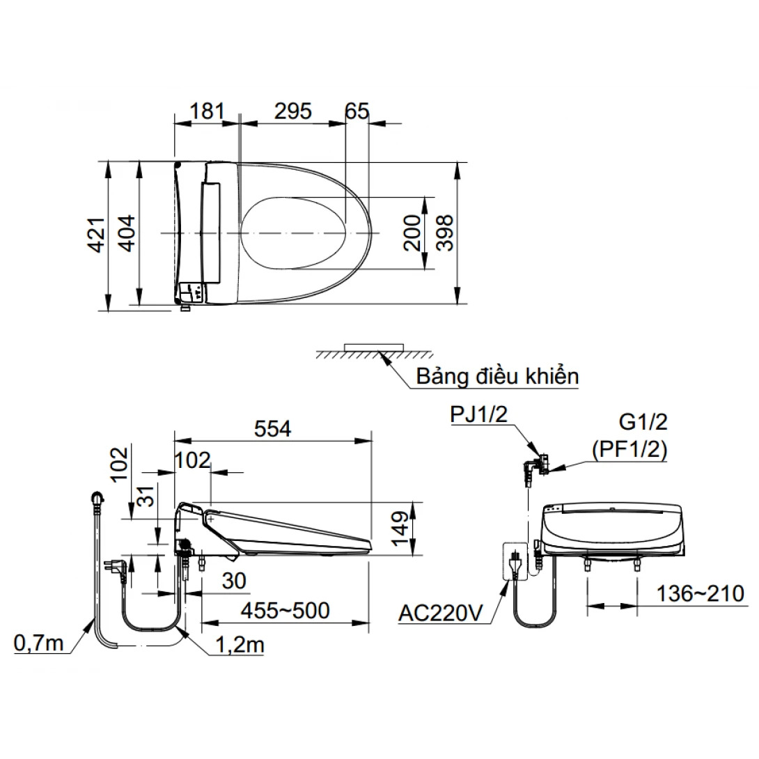 THIẾT KẾ NẮP RỬA ĐIỆN TỬ INAX THÔNG MINH CW-KA22AVN BAO GỒM