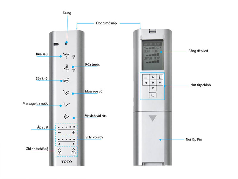 Nắp bồn cầu thông minh TOTO có cơ chế cảm ứng chống nước giúp dễ dàng điều khiển trong môi trường nước. Các nút điều khiển in to và rõ, dễ điều chỉnh. Cơ chế ghi nhớ người dùng đầy tiện lợi.