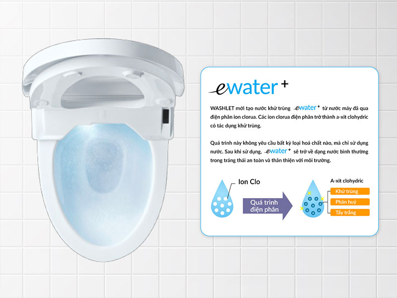 Là công nghệ đáng tiền nhất trên nắp rửa điện tử hiện đại. Dòng nước đầu vào được điện phân, khử trùng, sau đó sử dụng cho các tính năng như xịt rửa, phun sương. Việc này giúp tăng cường bảo vệ người dùng, đảm bảo yếu tố vệ sinh sạch sẽ.