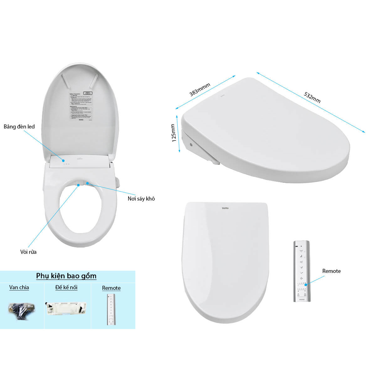 | Tiện ích nắp rửa | Nắp đóng êm Vòi phun tự làm sạch Nút vệ sinh vòi rửa Tiết kiệm điện Phun sương khử trùng EWATER+ Vệ sinh vòi rửa bằng EWATER+ Phun sương PREMIST |
