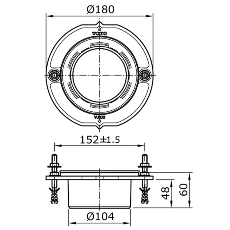 Bản vẽ kỹ thuật ống nối thoát sàn TOTO T53P100VR