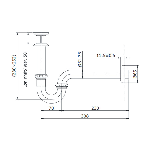 Bản vẽ kỹ thuật ống thải chữ P TOTO TVLF405