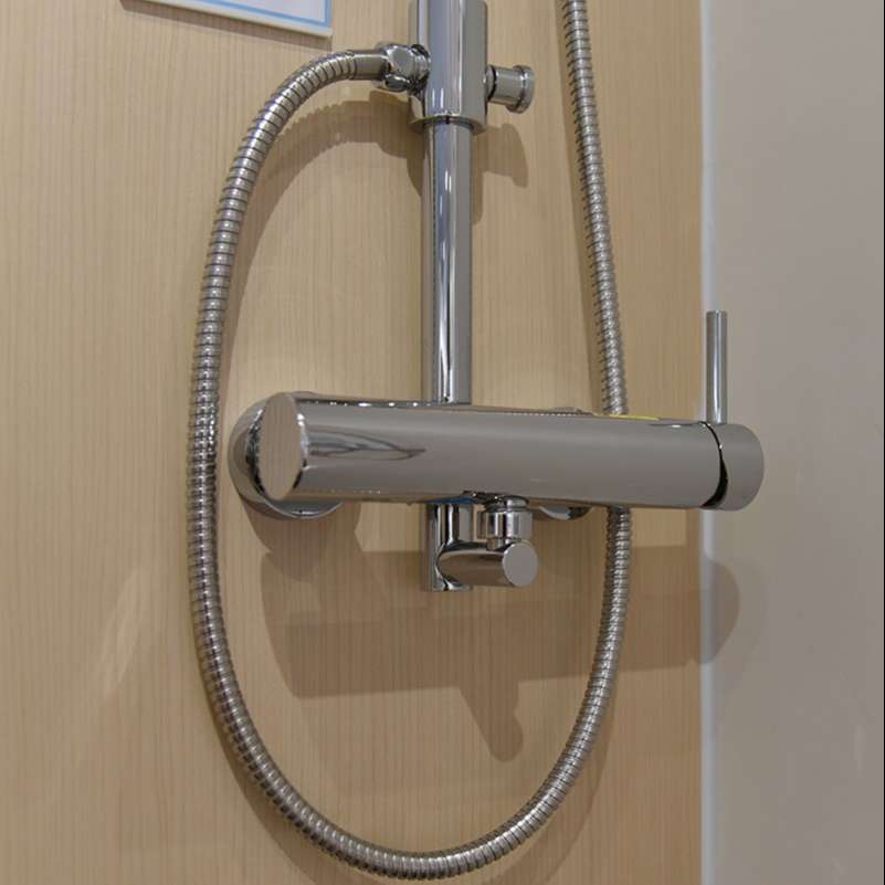 • Phần van củ sen và tay sen được thiết kế cài tích hợp vào cùng chiếc sen cây vừa gọn gàng và tiện lợi cho di chuyển và lắp đặt, bên cạnh đó có thể di chuyển lên xuống dọc thân sen linh hoạt theo nhu cầu