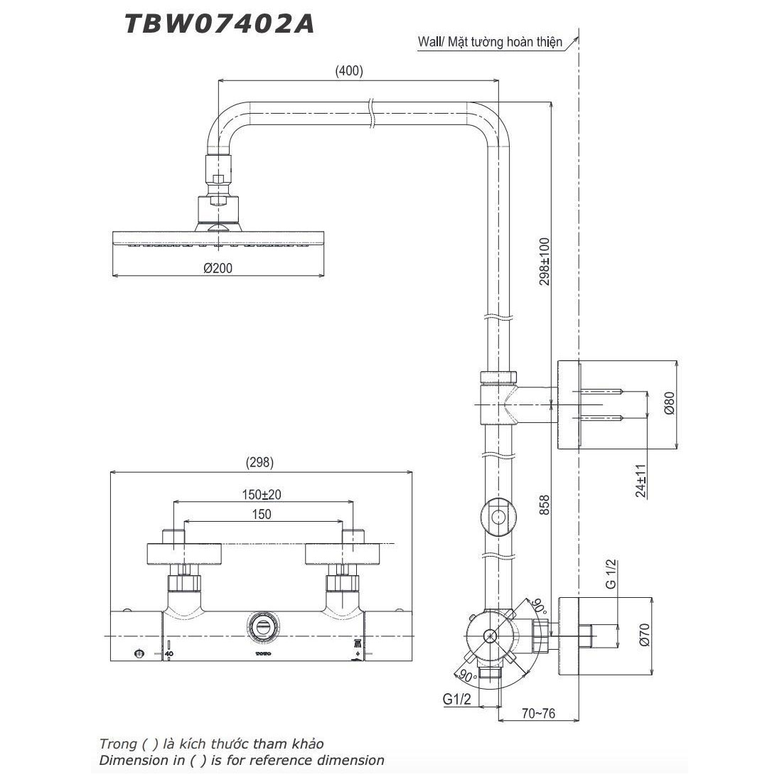 Bản vẽ kỹ thuật vòi sen tắm đứng điều chỉnh nhiệt độ dòng G TOTO TBW07402A