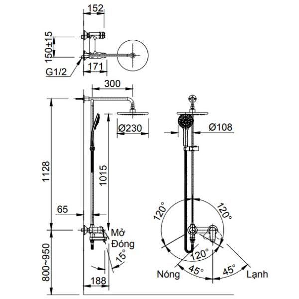 • Thiết kế sen cây với dáng cao phù hợp thể hình người Việt, bát sen đặt ngang phía trên đầu với kích thước to lớn mang đến những dòng nước chảy thẳng từ trên xuống mạnh mẽ, mang lại những trải nghiệm tắm rửa tuyệt vời, sảng khoái