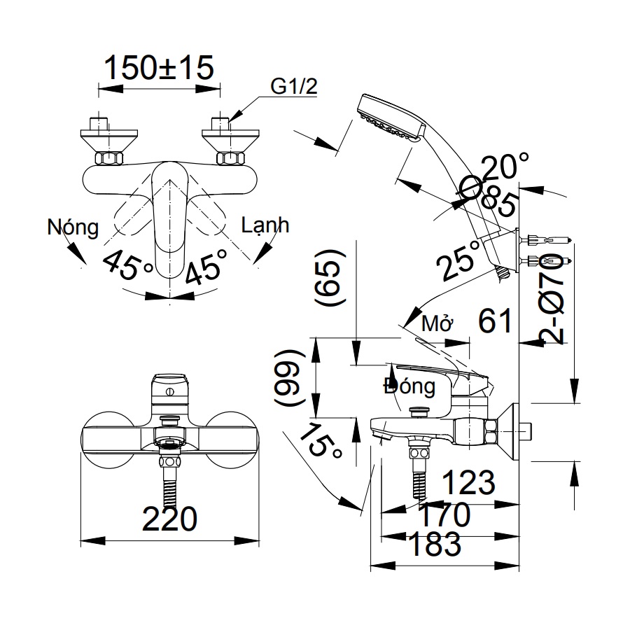 | Chế độ phun nước tay sen | Tay sen 1 chế độ |
