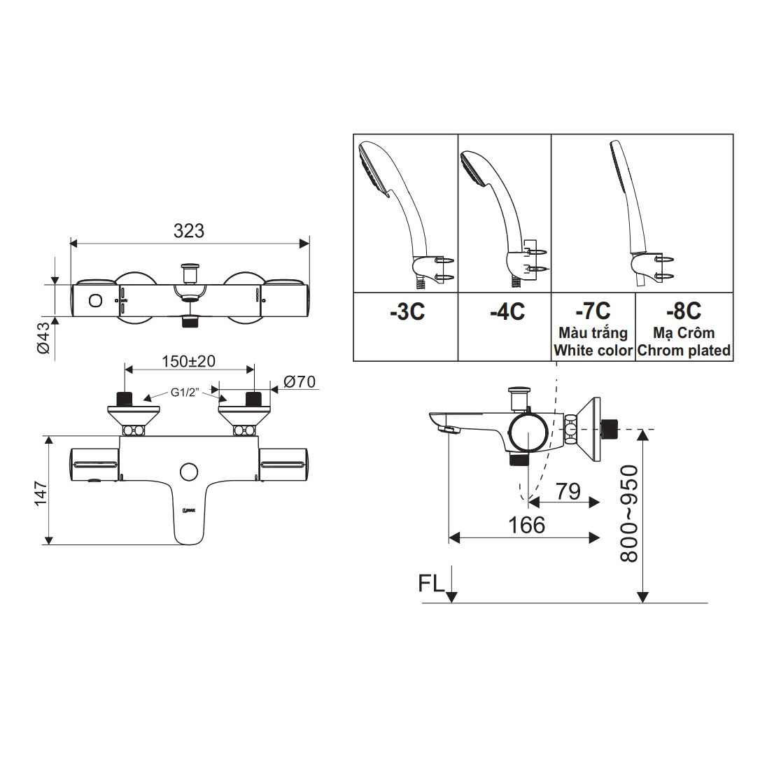 | Kích thước lỗ chờ | 150±25 mm |