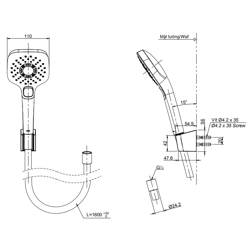 | Chế độ phun nước tay sen | Tay sen massage 3 chế độ |