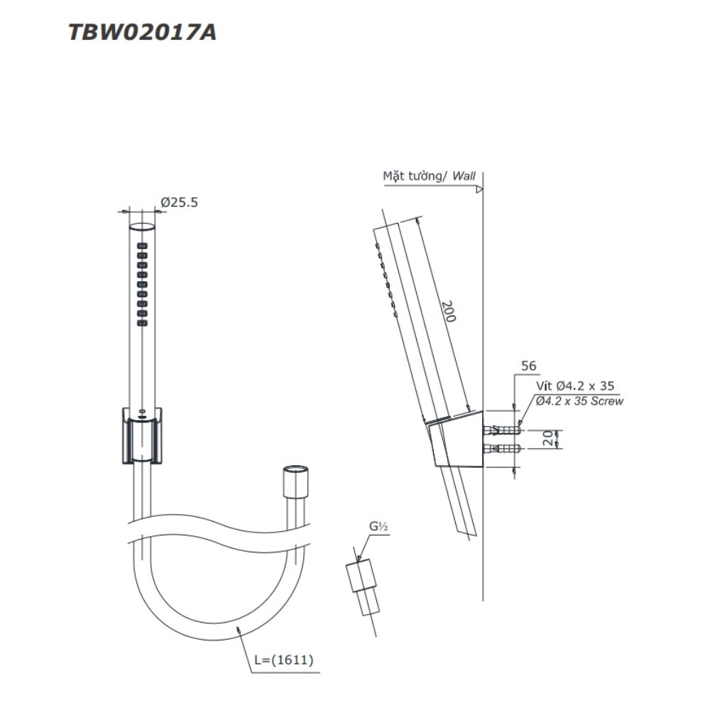 Bản vẽ kỹ thuật tay sen tắm TOTO TBW02017A