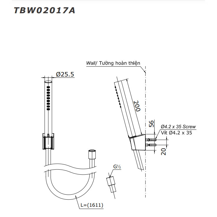 | Chế độ phun nước tay sen | Tay sen 1 chế độ |