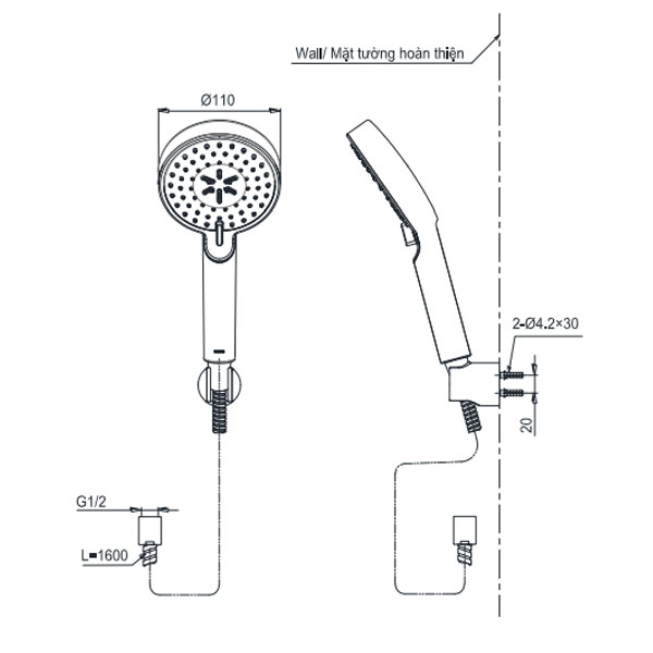 | Kích thước bát sen | 110 mm |