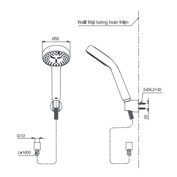 | Chế độ phun nước tay sen | Tay sen 1 chế độ |