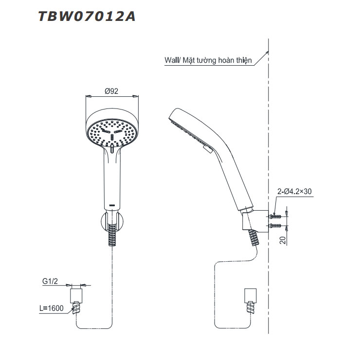 Bản vẽ kỹ thuật bộ tay sen TOTO TBW07012A