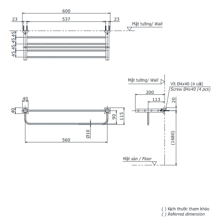 Bản vẽ kỹ thuật thanh vắt khăn Toto YTS408BV