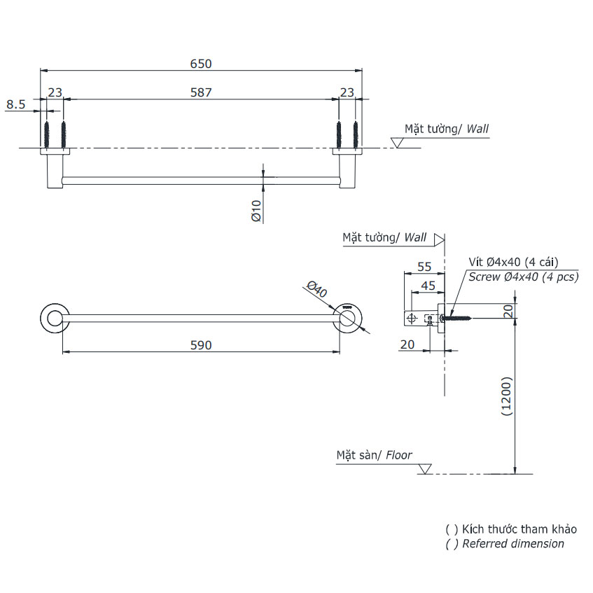 Bản vẽ kỹ thuật thanh vắt khăn TOTO YT406S6RV