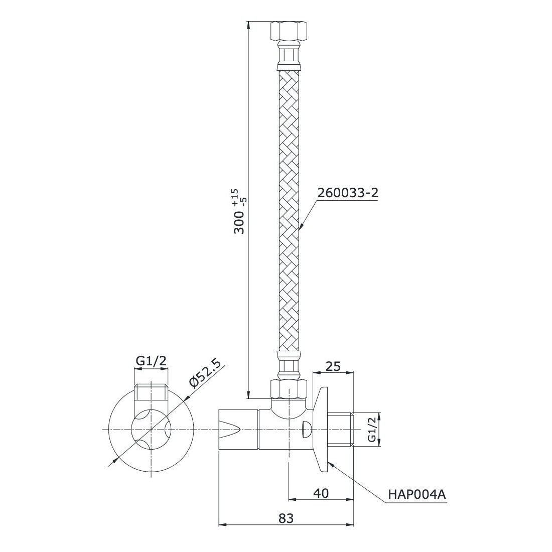 Bản vẽ kỹ thuật van khóa kèm dây cấp Toto HAP004AF